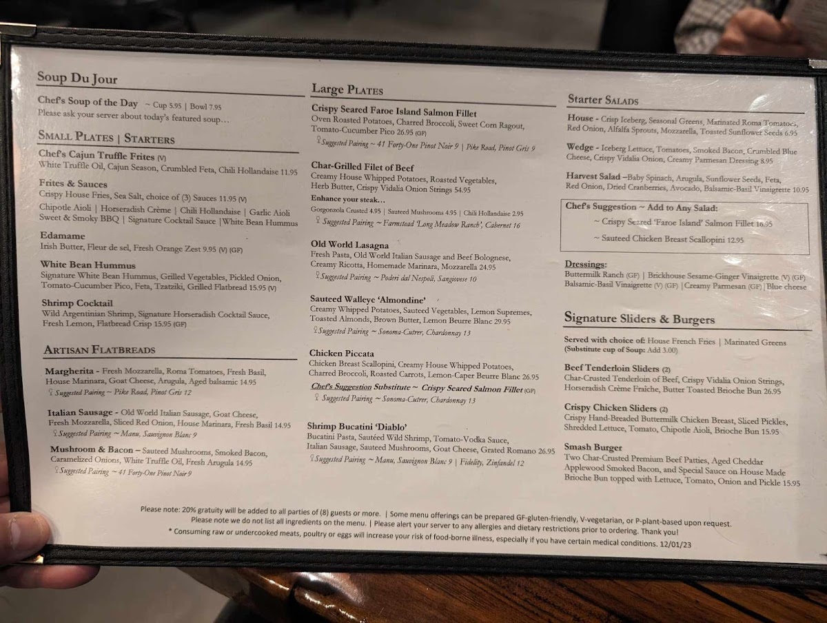 The menu at Our Table American Bistro offers a refined yet approachable fine dining experience, blending classic American flavors with thoughtful, elevated preparations. Visitors can expect a selection that moves seamlessly from satisfying small plates like White Bean Hummus and Chef’s Cajun Truffle Frites to hearty main dishes such as the Char-Grilled 8oz Filet of Beef, Shrimp Bucatini Diablo, and Old World Lasagna.